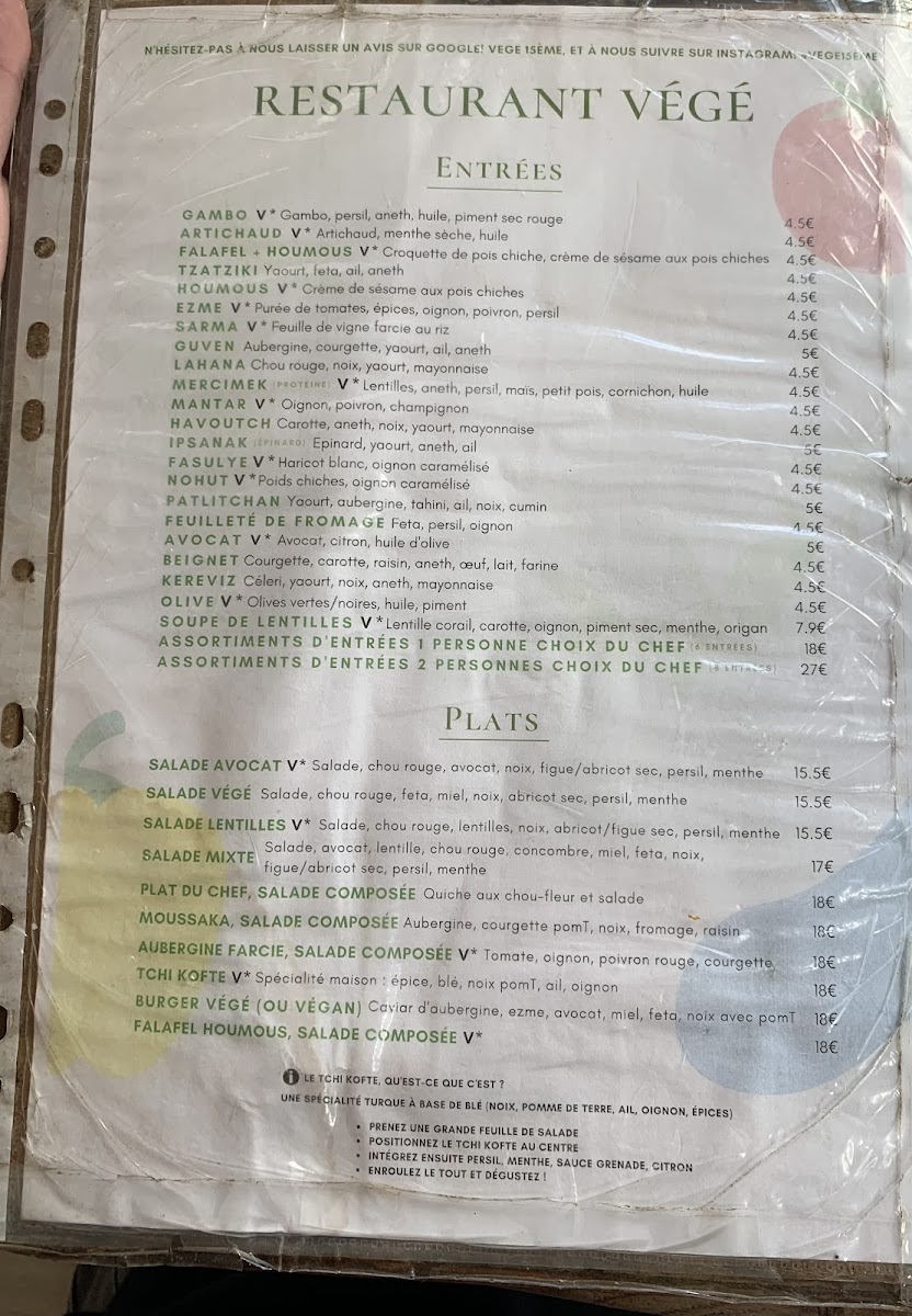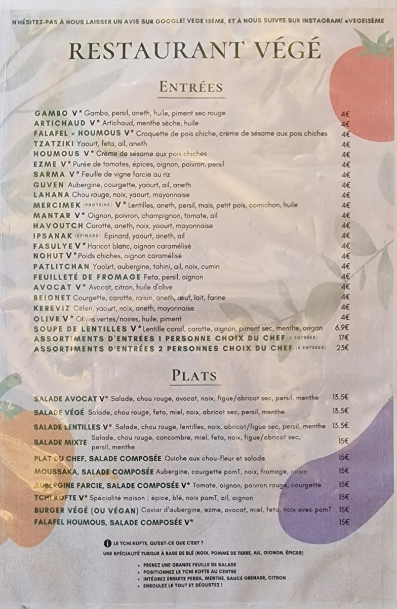 Welcome to Restaurant VEGE, your oasis for vegetarian and vegan cuisine nestled in the heart of Paris at 122 Rue du Théâtre. This cozy spot is a must-visit for anyone seeking hearty, plant-based meals. The menu features a variety of tantalizing options, catering to both vegetarians and vegans alike.